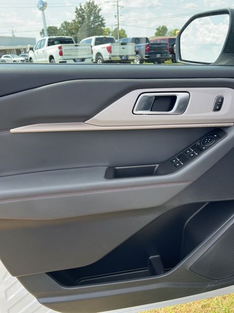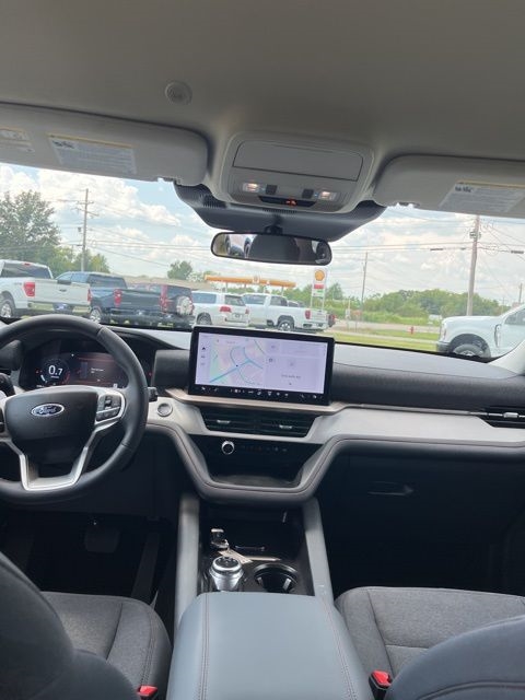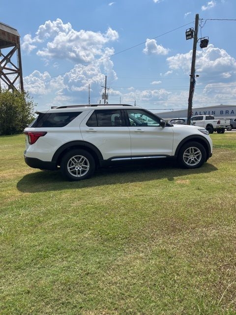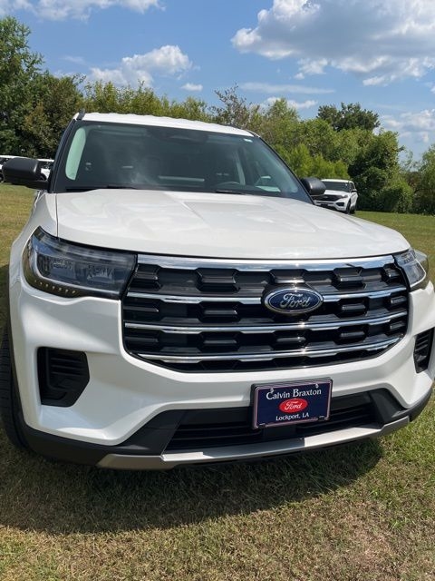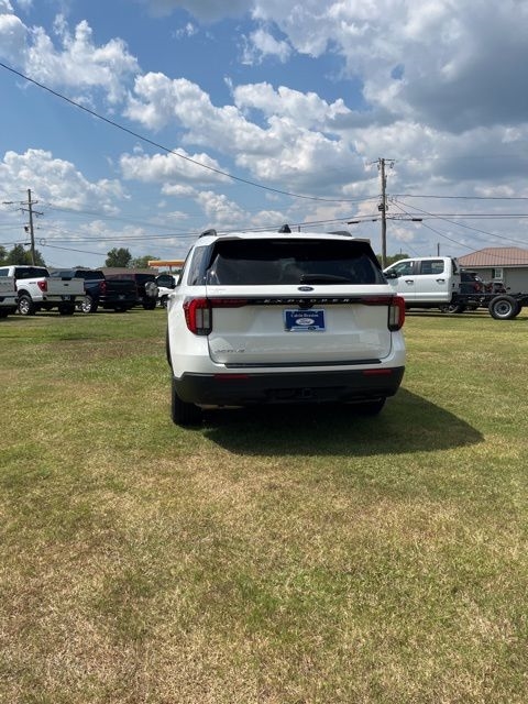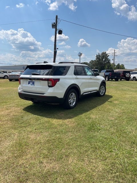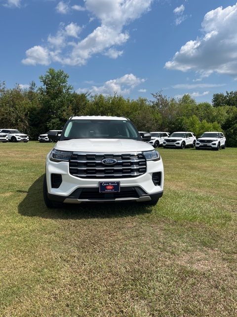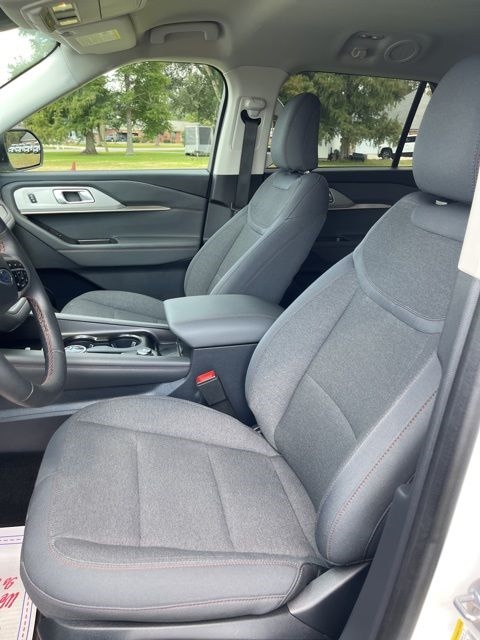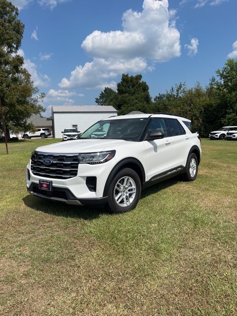 White Metallic 2025 Ford Explorer Active RWD 10-Speed Automatic 2.3L EcoBoost I-4 Explorer Active, 4D Sport Utility, 2.3L EcoBoost I-4, 10-Speed Automatic, RWD, White Metallic, Dark Gray/Onyx Cloth, 3rd row seats: bench, 4-Wheel Disc Brakes, 6 Speakers, ABS brakes, Air Conditioning, AM/FM radio: SiriusXM with 360L, AM/FM Stereo, Apple CarPlay/Android Auto, Auto High-beam Headlights, Automatic temperature control, Brake assist, Bumpers: body-color, Compass, Delay-off headlights, Driver door bin, Driver vanity mirror, Dual front impact airbags, Dual front side impact airbags, Electronic Stability Control, Emergency communication system: 911 Assist, Equipment Group 200A Standard Package, Exterior Parking Camera Rear, Four wheel independent suspension, Front anti-roll bar, Front Bucket Seats, Front Center Armrest, Front dual zone A/C, Front License Plate Bracket, Front reading lights, Fully automatic headlights, Heated door mirrors, Heated front seats, Illuminated entry, Knee airbag, Leather steering wheel, Low tire pressure warning, Navigation System, Occupant sensing airbag, Outside temperature display, Overhead airbag, Overhead console, Panic alarm, Passenger door bin, Passenger vanity mirror, Power door mirrors, Power driver seat, Power Liftgate, Power passenger seat, Power steering, Power windows, Rear air conditioning, Rear anti-roll bar, Rear reading lights, Rear window defroster, Rear window wiper, Remote keyless entry, Security system, Speed control, Speed-sensing steering, Speed-Sensitive Wipers, Split folding rear seat, Spoiler, Steering wheel mounted audio controls, Tachometer, Telescoping steering wheel, Tilt steering wheel, Traction control, Trip computer, Unique Heated Cloth Captain's Chairs, Variably intermittent wipers.