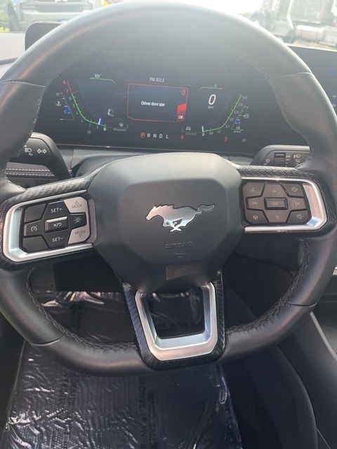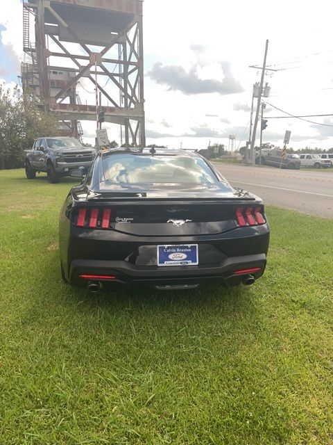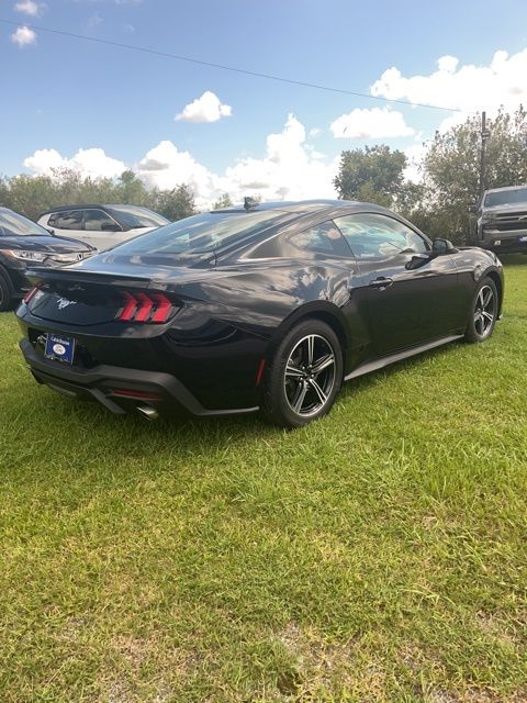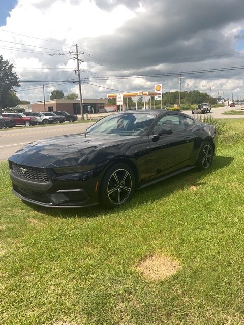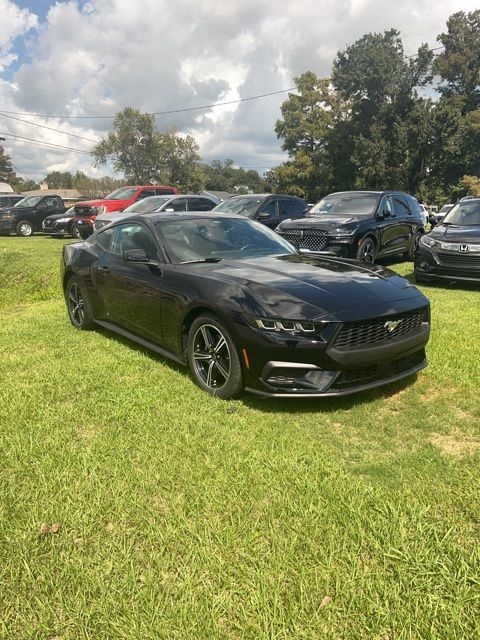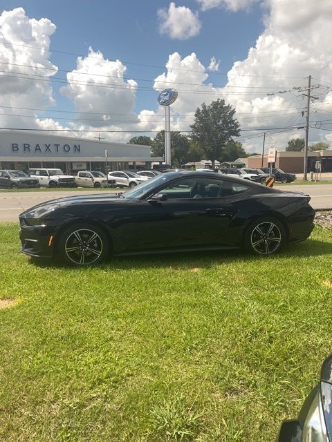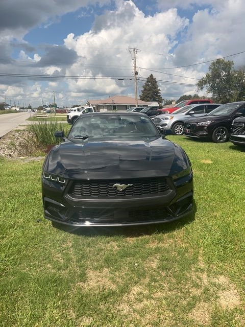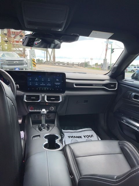 Shadow Black 2025 Ford Mustang EcoBoost Premium RWD 10-Speed Automatic EcoBoost 2.3L I4 GTDi DOHC Turbocharged VCT APPLE CARPLAY, ANDROID AUTO, Mustang EcoBoost Premium, 2D Coupe, EcoBoost 2.3L I4 GTDi DOHC Turbocharged VCT, 10-Speed Automatic, RWD, Shadow Black, Black Onyx Premium Synthetic, 4-Wheel Disc Brakes, ABS brakes, Air Conditioning, AM/FM Stereo, Auto High-beam Headlights, Automatic temperature control, Brake assist, Bumpers: body-color, Compass, Delay-off headlights, Driver door bin, Driver vanity mirror, Dual front impact airbags, Dual front side impact airbags, Electronic Stability Control, Emergency communication system: 911 Assist, Equipment Group 200A Standard Package, Exterior Parking Camera Rear, Four wheel independent suspension, Front anti-roll bar, Front Bucket Seats, Front Center Armrest, Front dual zone A/C, Front reading lights, Fully automatic headlights, HD Radio, Illuminated entry, Knee airbag, Leather Shift Knob, Low tire pressure warning, Occupant sensing airbag, Outside temperature display, Overhead airbag, Overhead console, Panic alarm, Passenger door bin, Passenger vanity mirror, Power door mirrors, Power steering, Power windows, Radio data system, Rain sensing wipers, Rear anti-roll bar, Rear Parking Sensors, Rear window defroster, Remote keyless entry, SiriusXM w/360L, Speed control, Speed-sensing steering, Speed-Sensitive Wipers, Split folding rear seat, Sport steering wheel, Steering wheel mounted audio controls, SYNC 4, Tachometer, Telescoping steering wheel, Tilt steering wheel, Traction control, Trip computer, Variably intermittent wipers, Voltmeter.